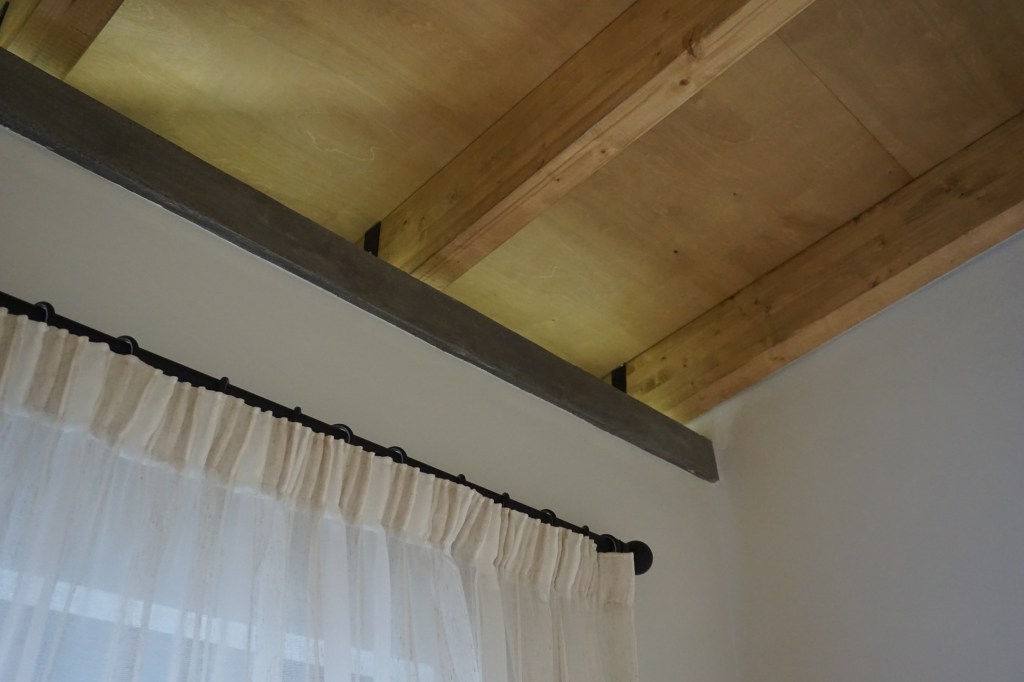 Εξωτερικά στις τοιχοποιϊες και στο δώμα τοποθετήθηκε θερμομόνωση. Η ξύλινη στέγη του καθιστικού ανακατασκευάστηκε πλήρως και οι ξύλινες δοκίδες της στέγης εδράζονται σε σενάζια εμφανούς σκυροδέματος. Για το πέτσωμα χρησιμοποιήθηκε κόντρα πλακέ συμήδας στο φυσικό της χρώμα.